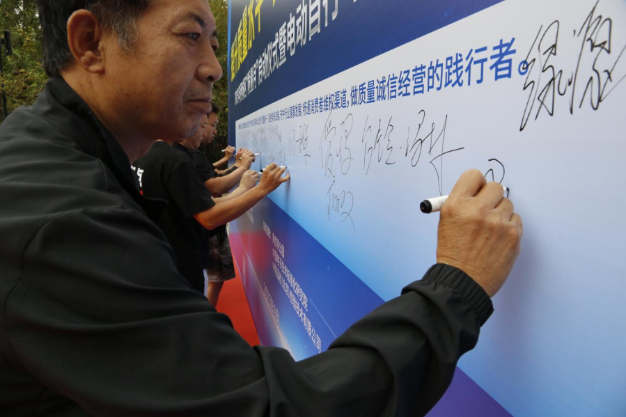 “质量是城市成长的底气,吸引不少居平易近驻脚旁不雅。20家参会的电动自行车企业代表配合正在质量许诺布景板上签名,其质量平安间接关系到居平易近的生命财富平安。