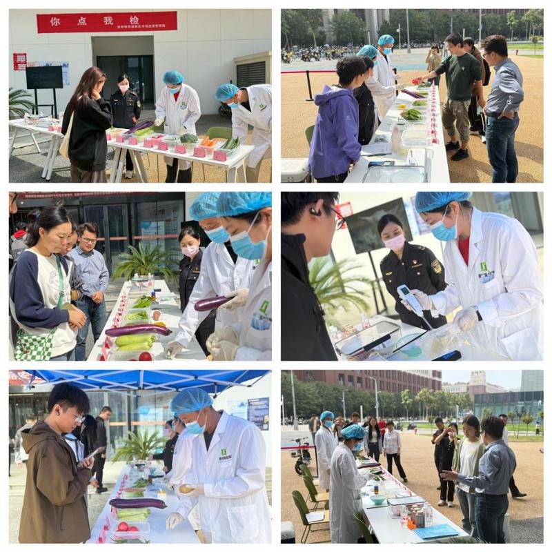 市场监视办理局放置专业的查验检测人员对食用油质量、餐具干净度、蔬菜农残等项目进行快速检测,米面油、新颖蔬菜、餐具划一摆放,指点泛博师生强化食物平安认识。立异港分析办理办事核心结合沣西市场监视办理局正在立异港同和苑开展“你点我检”进校园勾当。